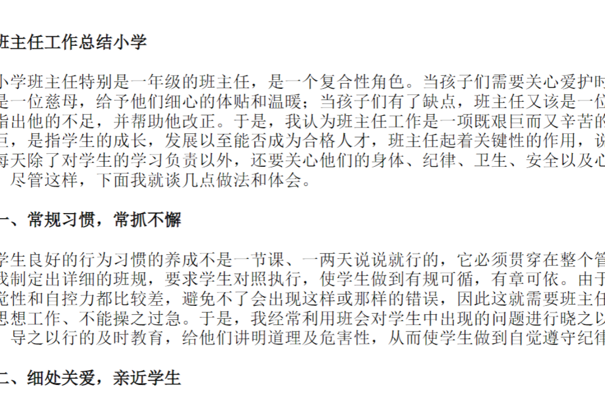 各位小学班主任们:总结工作应紧扣学生与班级成长,却不知如何精准把握。资料围绕学生在知识学习、品德塑造、社交能力等方面的成长;分析班级团队协作、凝聚力提升情况;阐述班级发展规划的实施进度与调整方向。助力聚焦关键,做好工作总结。文章有限,以下仅展示部分内容,点击下载按钮查看全部