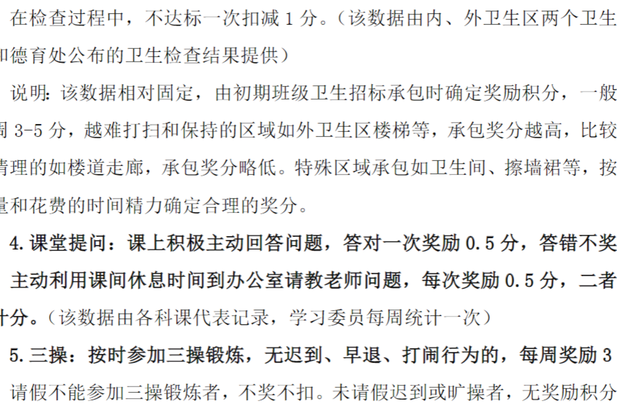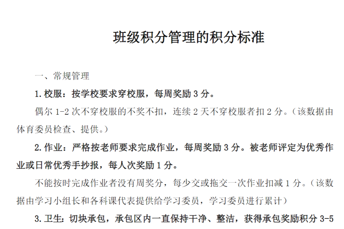 班级管理【班级积分管理的积分标准】资料 细化积分管理依据