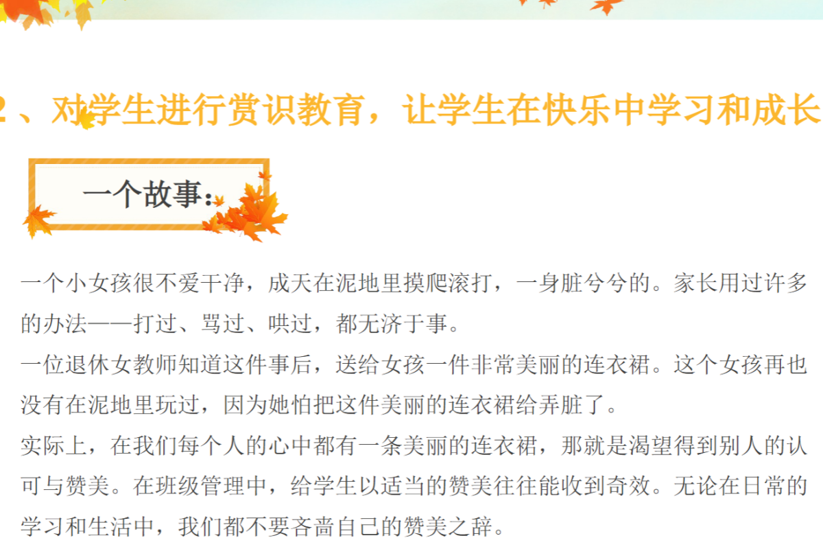 各位中小学班主任们:交流后进生转化经验,缺具体案例,难给同行实操指导?这份班主任经验交流 PPT 能助力!资料包含:后进生特点分析页、转化策略设计页、激励方法指导页、转化案例分享页等。适用于后进生教育研讨会、班主任经验分享会、年级管理交流等场景,助力班主任分享转化经验。文章有限,以下仅展示部分内容,点击下载按钮查看全部